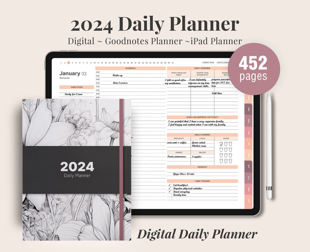 Stay organized with our 2024 Digital Daily Planner for iPad / Goodnotes. Dated daily weekly monthly planner for easy scheduling your work, studies, and to-dos.