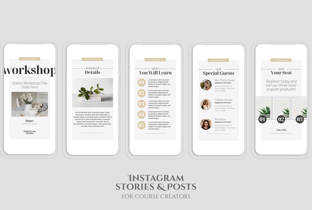 Carousel Stories & Posts for Instagram. Made in Canva. Ideal for promoting your online course, podcast, webinar, or opt-in project The template is fully editable and available in Canva