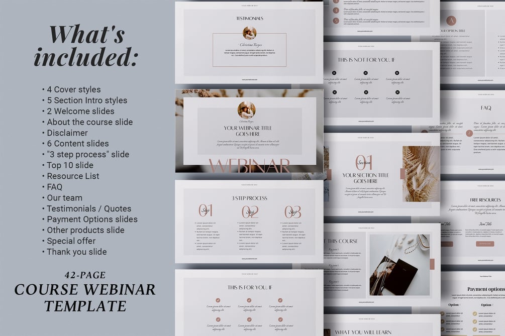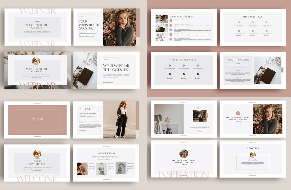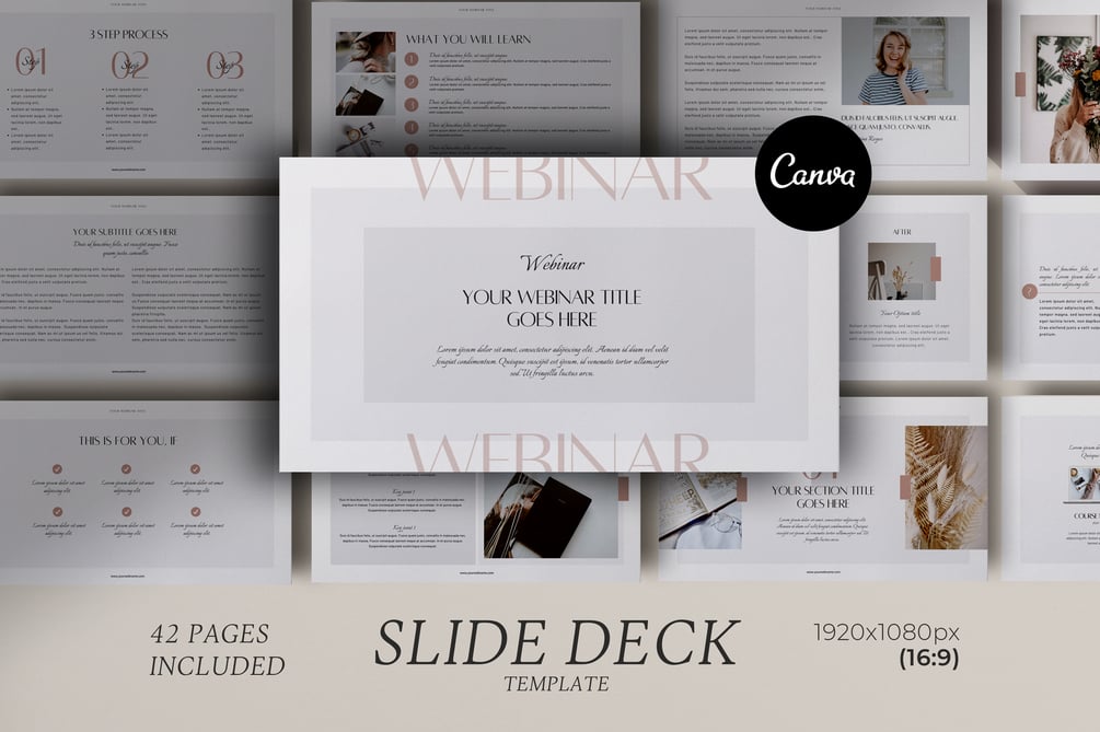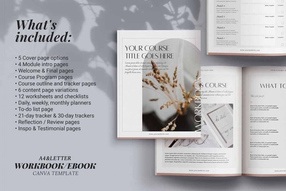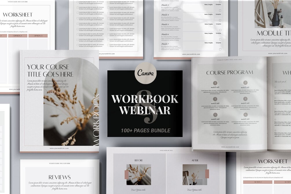 Canva Templates Set includes a 60-page workbook template and a 42-page webinar template.