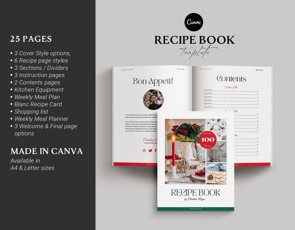 Christmas Recipe book template / Cookbook template/ Recipe Cards for food bloggers, recipe developers, and restaurant chefs.