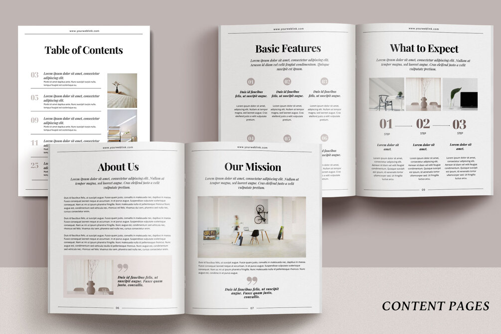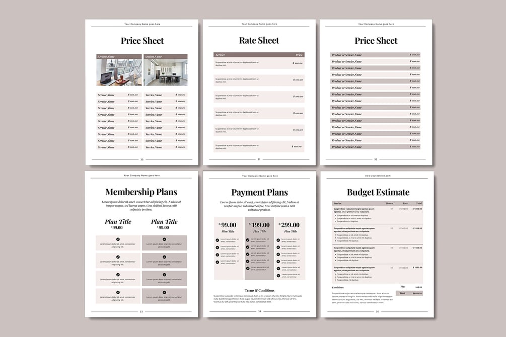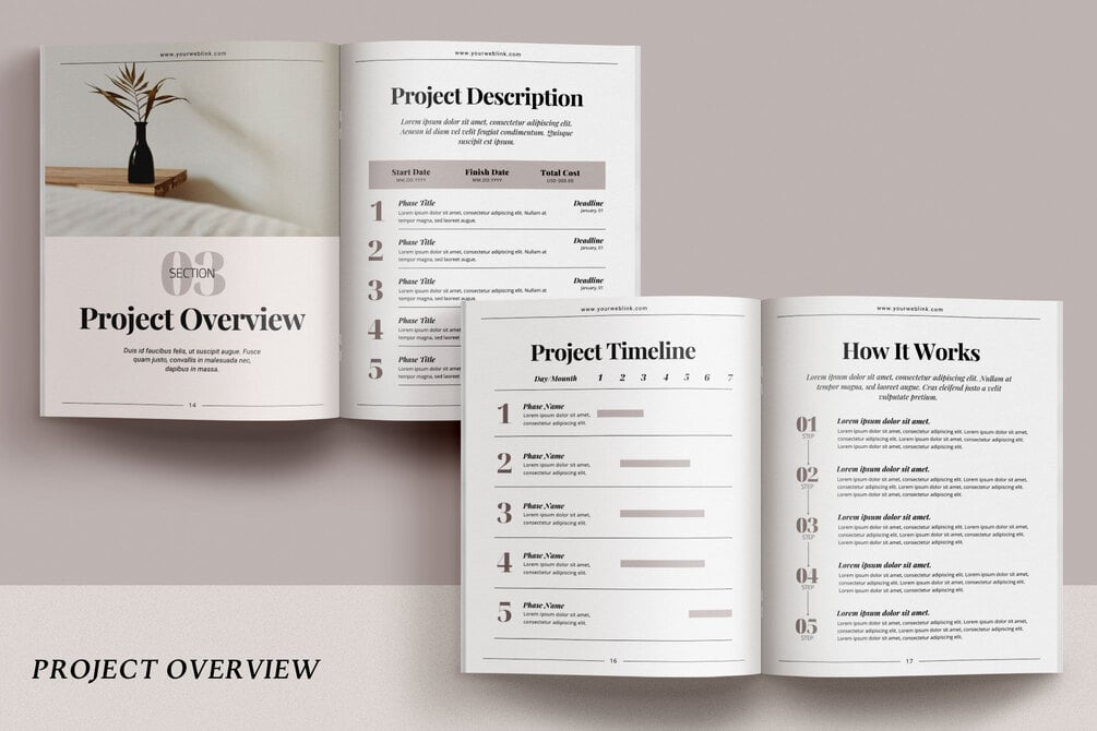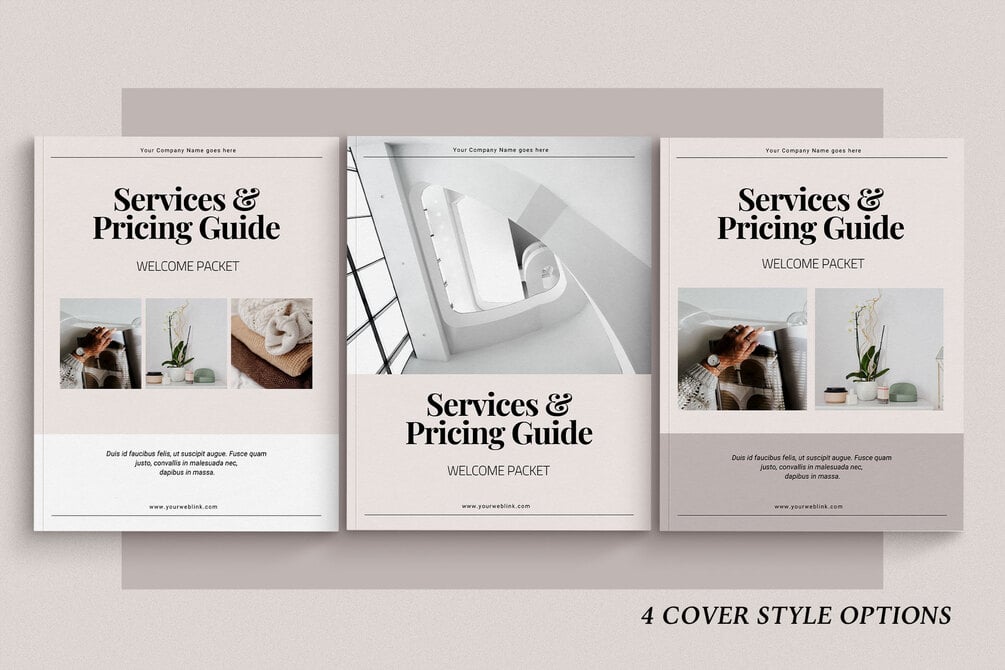 This template is ideal for creating client welcome packets, price lists, services & product guides, and project proposals.