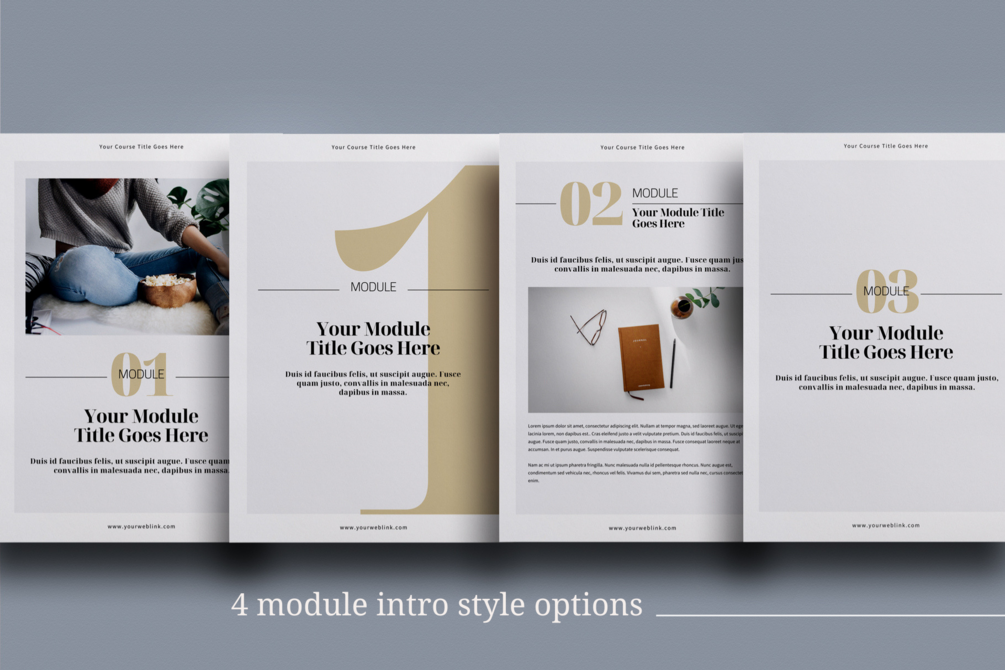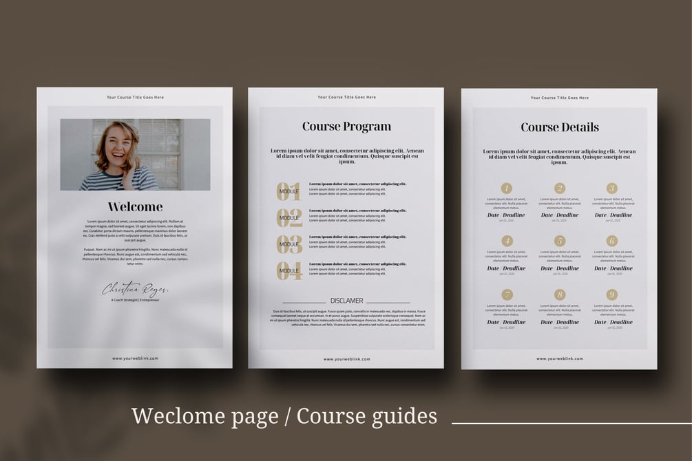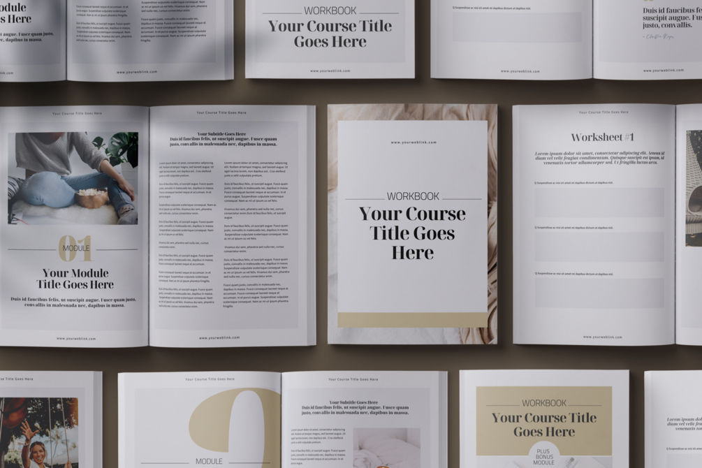 eCourse Workbook InDesign template will help you to develop a modern course workbook/guide for your next projects such as training course, workshop, webinar or freebie opt-in. A4 (210x297mm) and US Letter (8.5x11 inches) sizes.