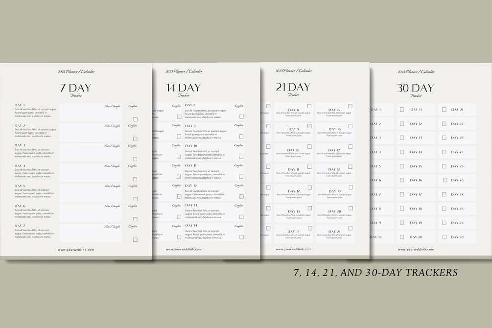 - 4 Tracker pages (for 7, 14, 21, 30-day challenges)