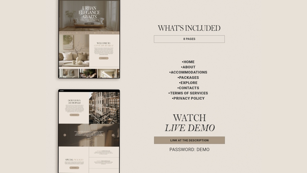 CITYSCAPE RETREAT - Squarespace Website Template. Ideal for airbnb hosts, vacation home owners, bed and breakfast operators, and boutique hotel managers.