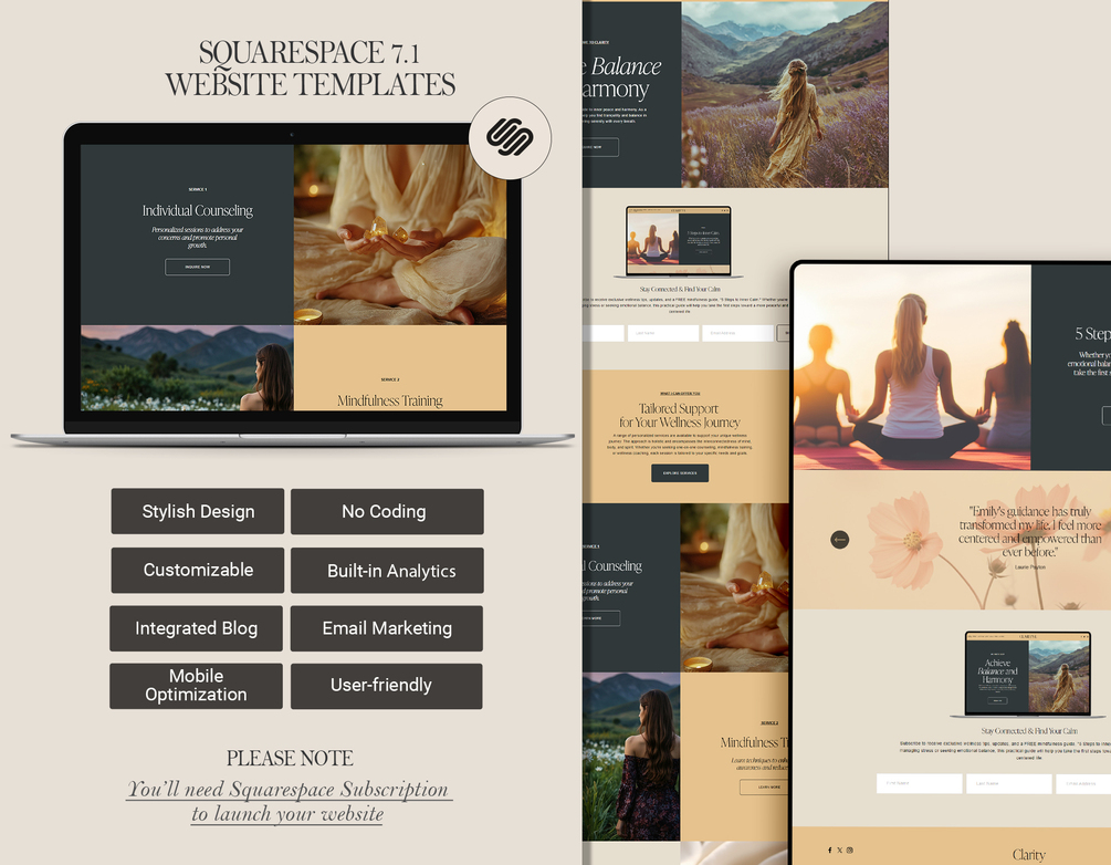 - This template is exclusively designed for Squarespace and is NOT compatible with other website platforms such as Wix, Showit, or Wordpress.