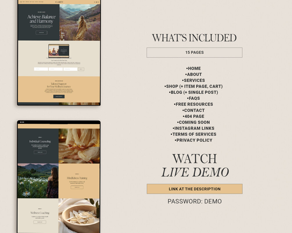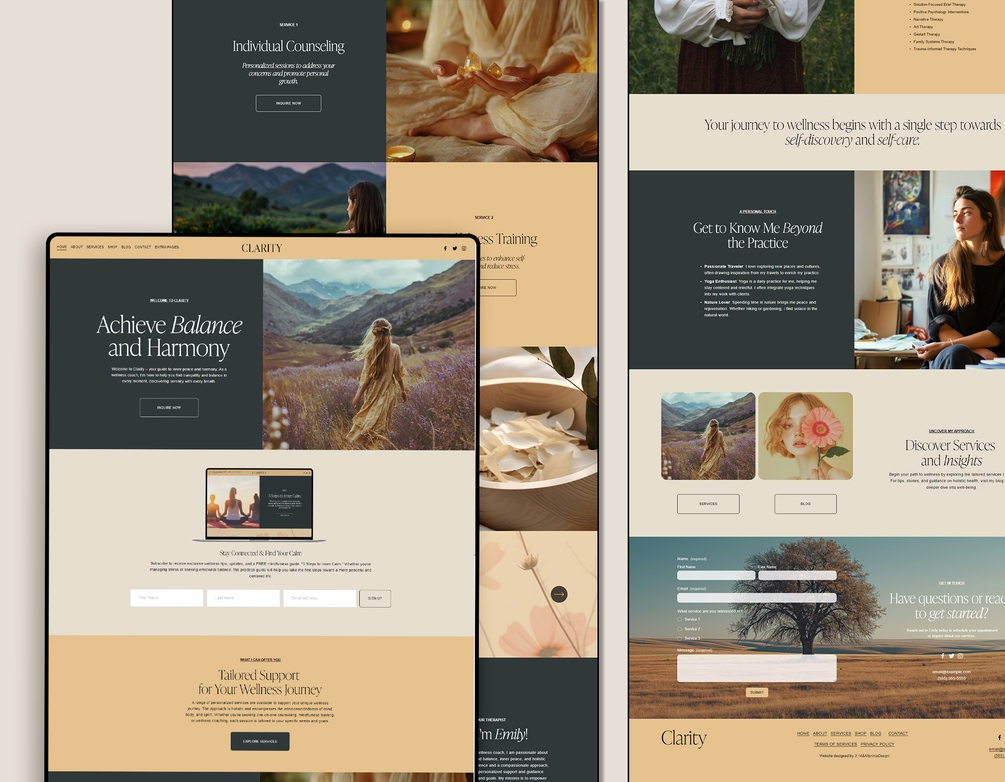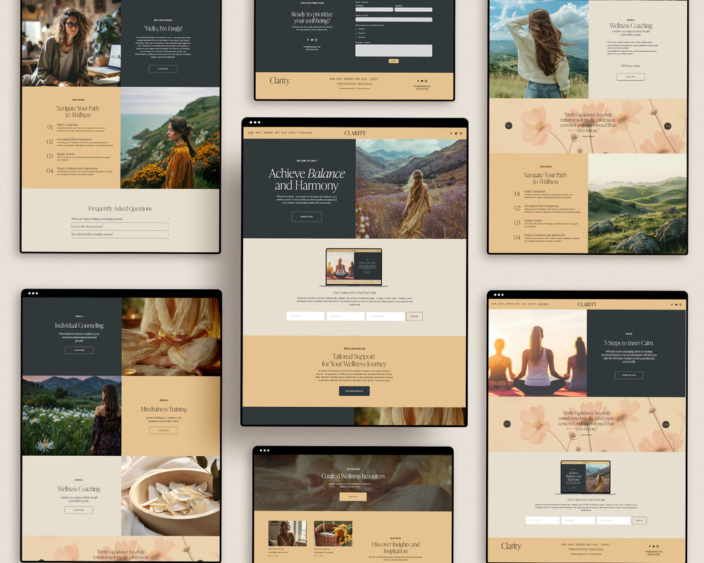 Wellness Coach, Therapist Squarespace Website Template, - Clarity