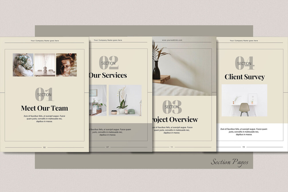 This template is ideal for creating client welcome packets, price lists, services & product guides, and project proposals.