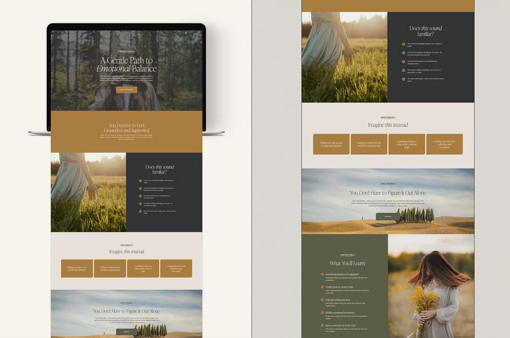 Harmonia Sales Page is a calm, purposefully structured one-page template for Squarespace 7.1 — created for wellness professionals, coaches, and therapists who want to present their offer with intention, emotional clarity, and ease.