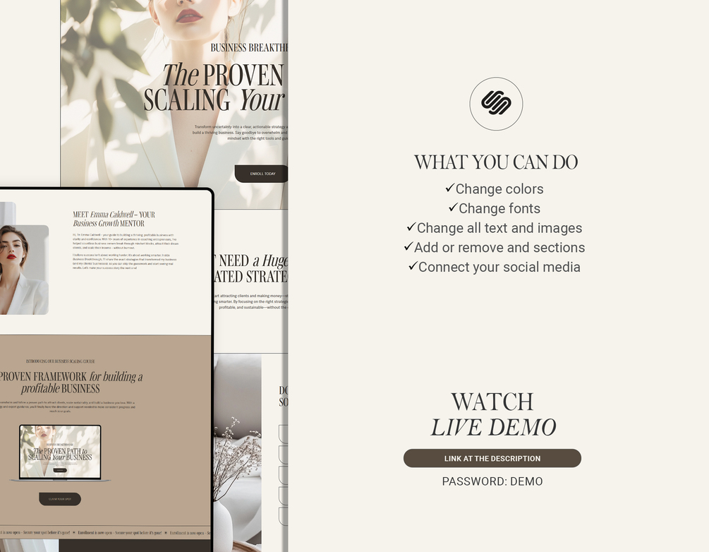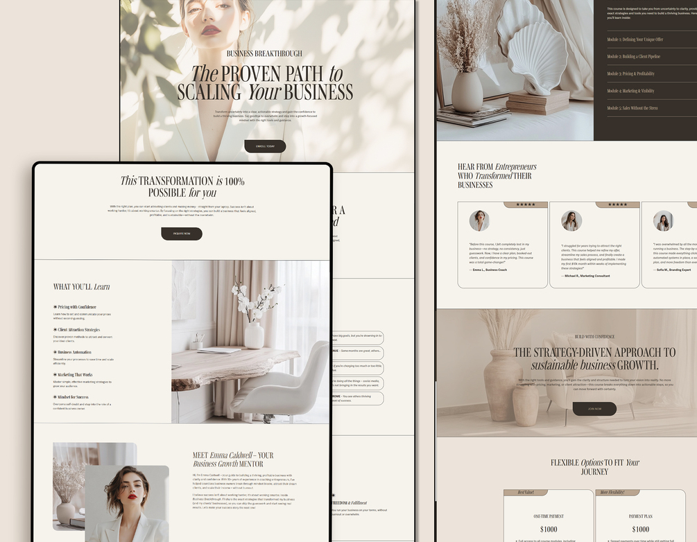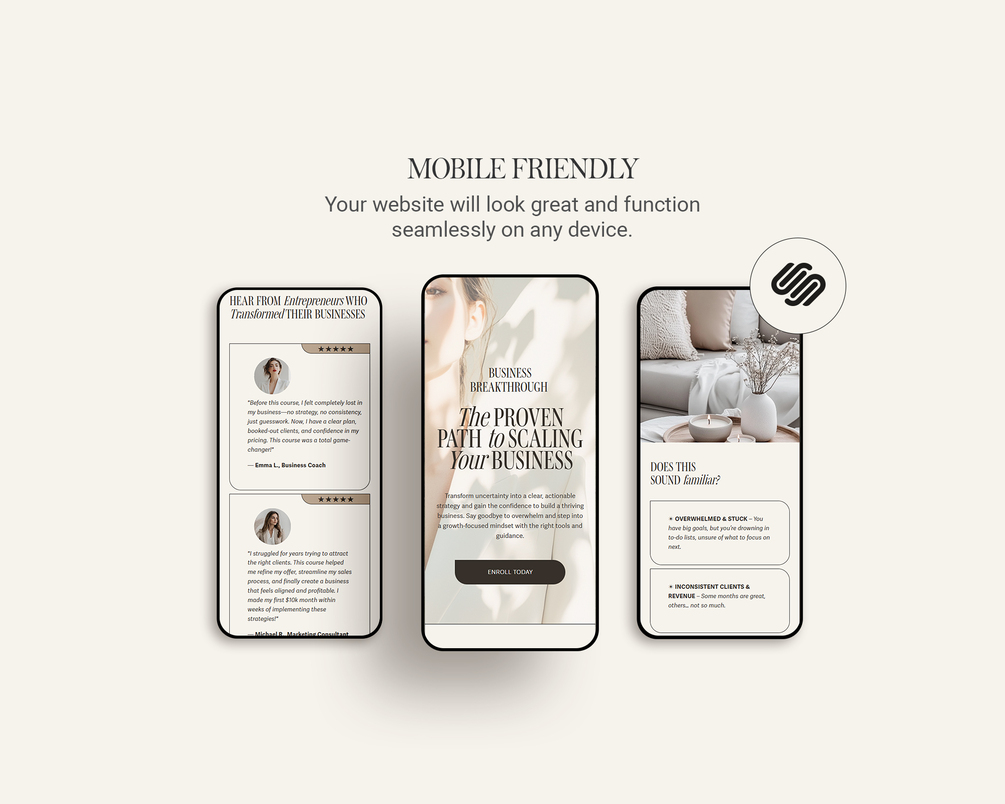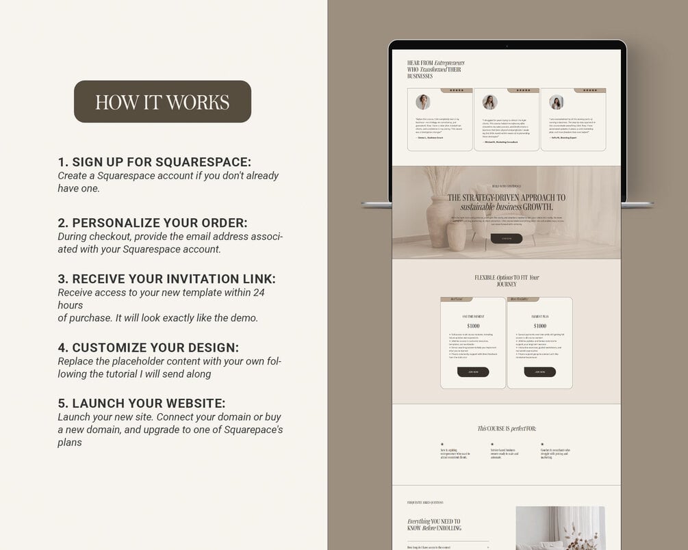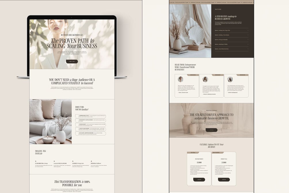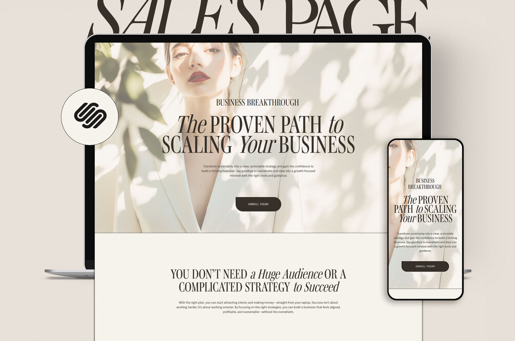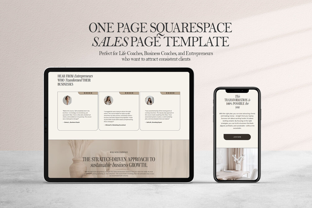 One Page Squarespace Sales Page Template – High-Converting Landing Page for Coaches, Entrepreneurs, and Business Owners - Beige
