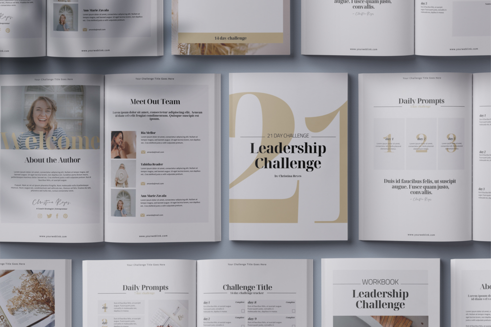 Challenge Workbook Creator Canva template to create a great addition to your training, Course, or Webinar. It can also be used to develop lead magnets / opt-in freebies for your online business.
