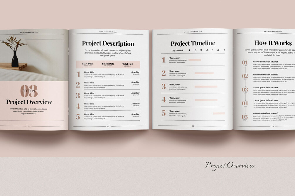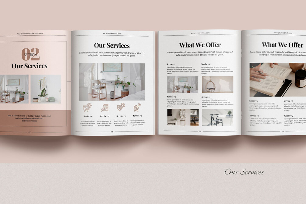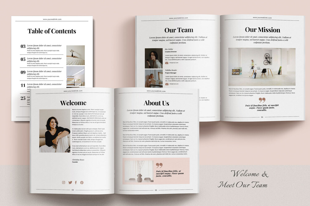 This template is ideal for creating client welcome packets, price lists, services & product guides, and project proposals.
